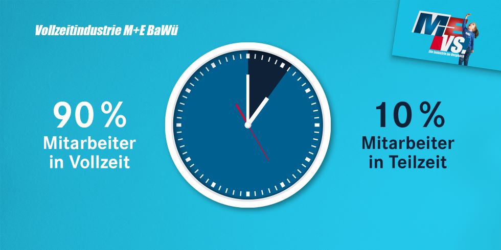 In der baden-württembergischen Metall- und Elektroindustrie arbeiten gerade einmal zehn Prozent der Arbeitnehmer in Teilzeit. Umgekehrt heißt das: 90 Prozent der M+E-Arbeitsplätze im Land sind Vollzeitstellen.