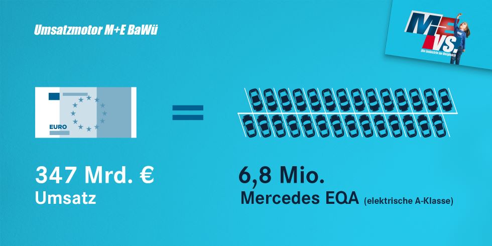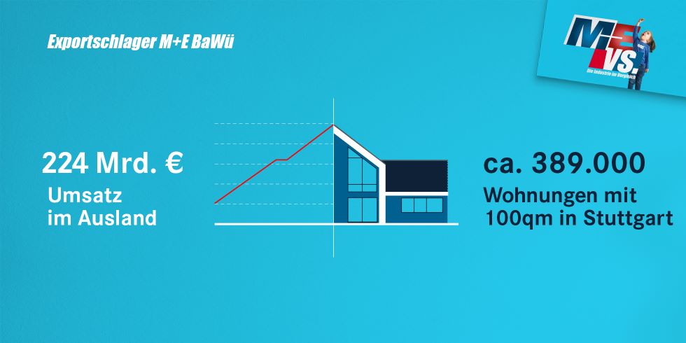 Im Jahr 2023 machten die baden-württembergischen Unternehmen der Metall- und Elektroindustrie ca. 224 Milliarden Euro Umsatz im Ausland. Durch die Wettbewerbsfähigkeit auf den Weltmärkten sichert die M+E-Branche Arbeitsplätze im Land.